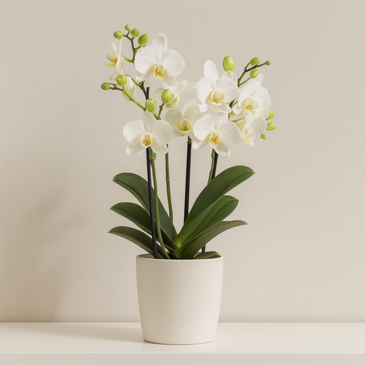 Weiße Orchidee "Amabilis" - ⭥35cm - mit Ziertopf Elite in Silber
