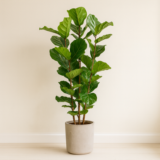 - Ficus lyrata (Geigenfeige) – große, geigenförmige Blätter, moderner Interior-Trend