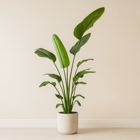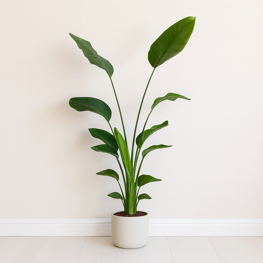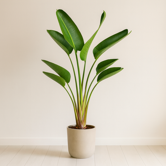 - Strelitzia nicolai – die imposante Paradiesvogelblume, ideal für große Räume.