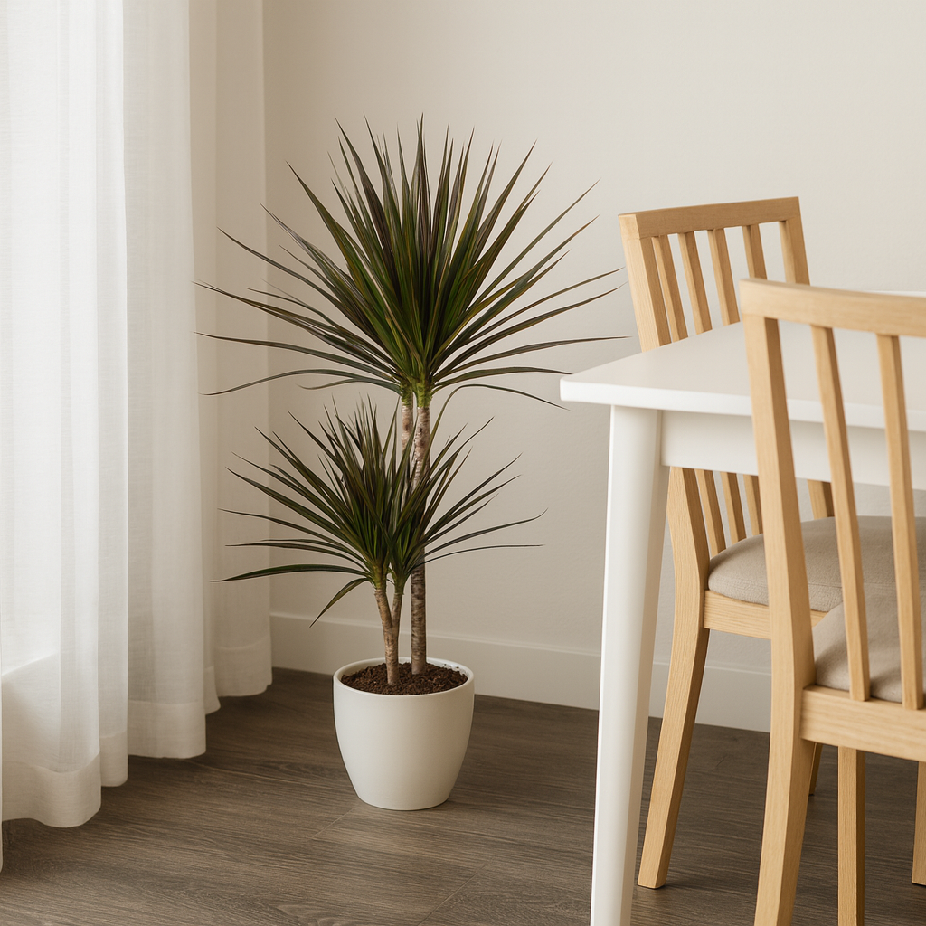 Dracaena Marginata Magenta ist eine beeindruckende Zimmerpflanze, die mit ihren leuchtenden, dunkelgrünen Blättern und attraktiven purpurfarbenen Akze…