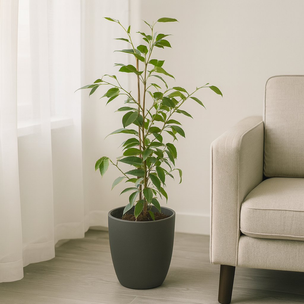 Die Ficus Benjamina Golden King begeistert mit warm goldgrün gemusterten Blättern und bringt edles Blattgrün in dein Zuhause. Ihre schlanke Baumform macht sie zu einem stilvollen Blickfang in jedem Raum – vom Wohnzimmer bis ins Büro. Sie bevorzugt einen hellen, gut belichteten Standort und moderate Pflege – so begleitet sie dich über Jahre hinweg mit lebendigem Blattwerk.