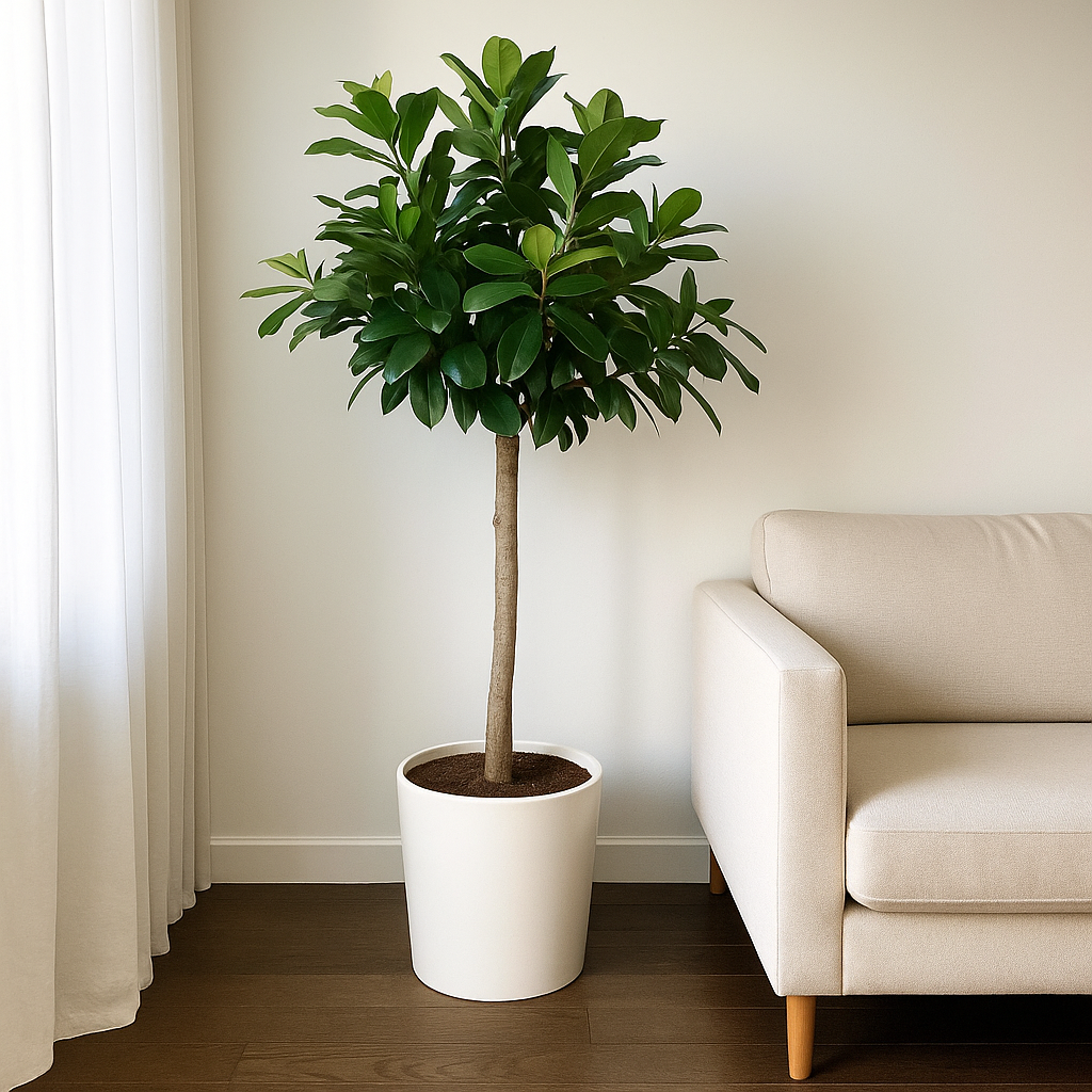 Die Ficus Cyathistipula "Afrikanische Feige" bringt mit ihren glänzenden, tiefgrünen Blättern und dem baumartigen Wuchs sofort tropisches Flair in dein Zuhause. Sie stammt aus den tropischen Regenwäldern Afrikas und liebt warme, helle Standorte – wächst aber erstaunlich anpassungsfähig im Innenraum. Ein elegantes Statement für Wohnräume, die Grün mit Charakter wollen.