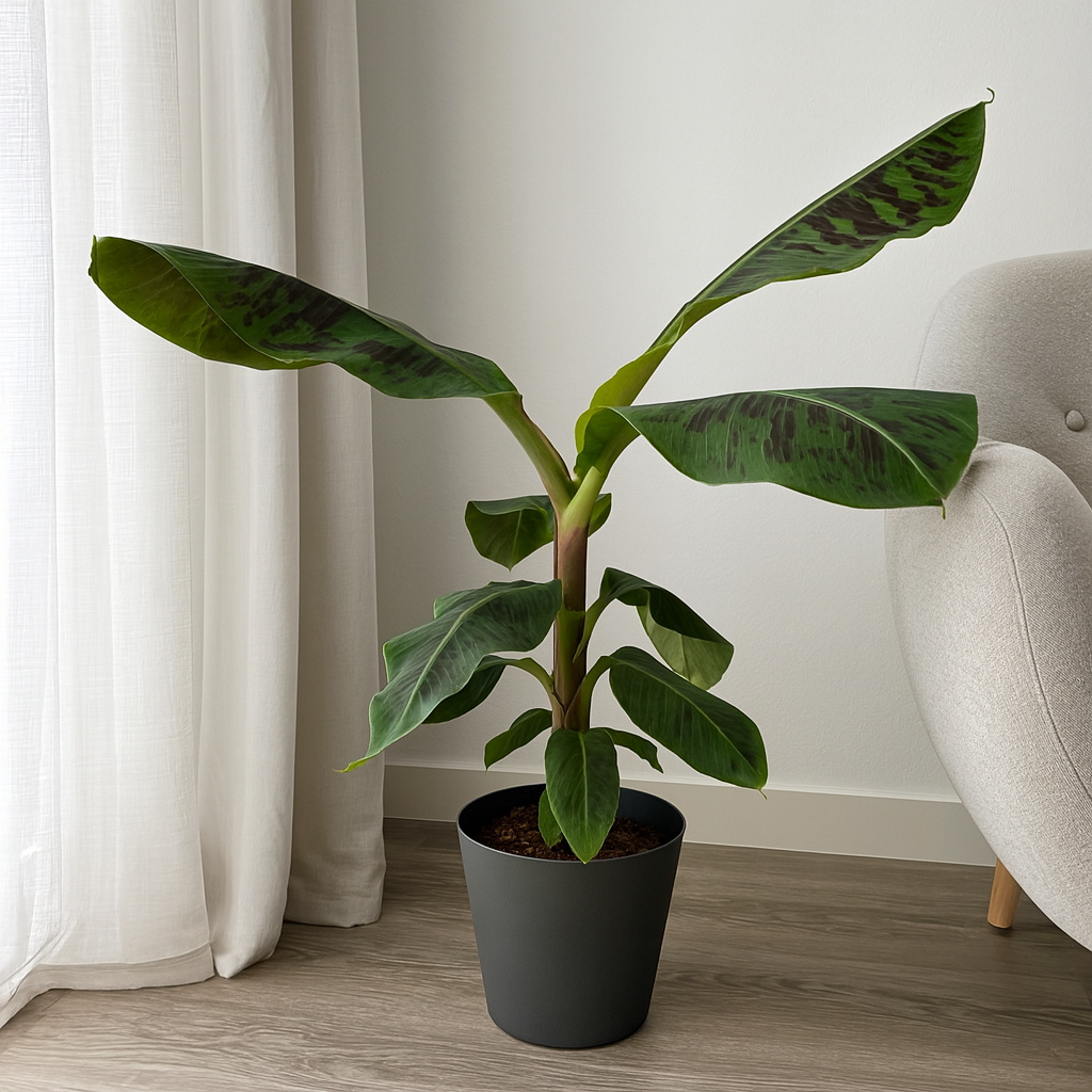 Die Musa ist eine tropische Zimmerpflanze mit großen, leuchtend grünen Blättern, die eine exotische Atmosphäre in jeden Raum bringt. Sie wächst schnell und verleiht Innenräumen eine natürliche, lebendige Ästhetik. Mit der richtigen Pflege kann sie auch im heimischem Bereich prächtig gedeihen.