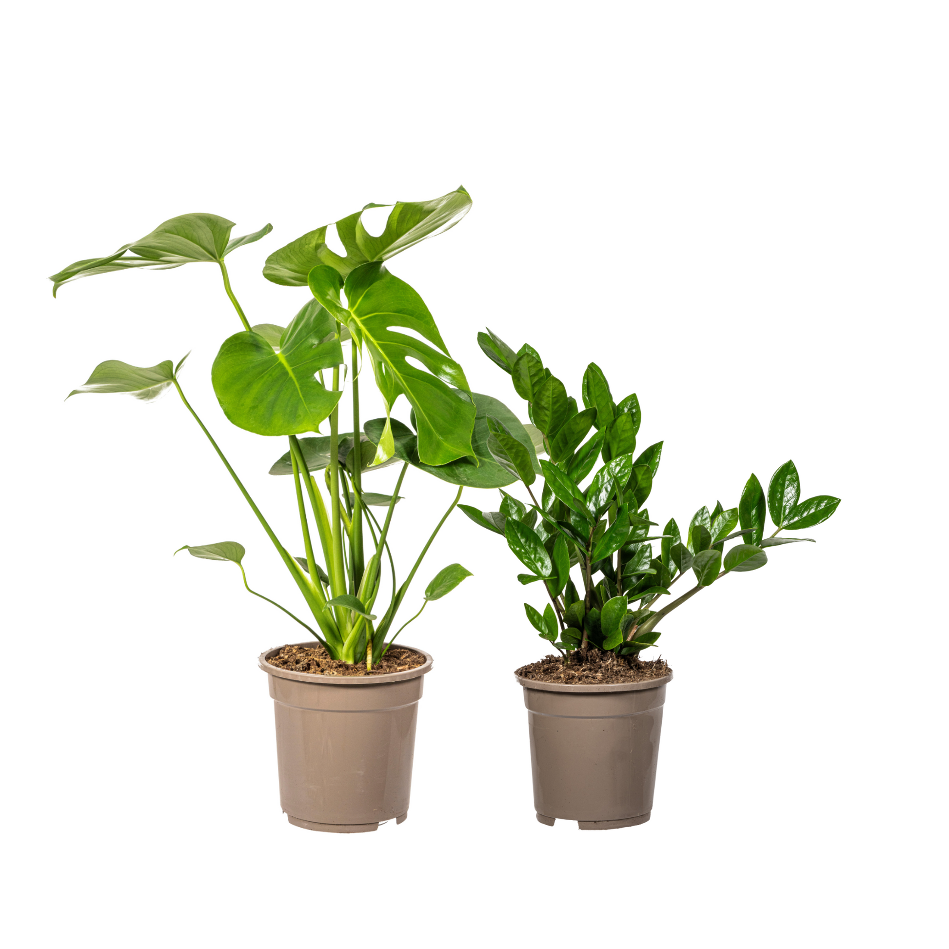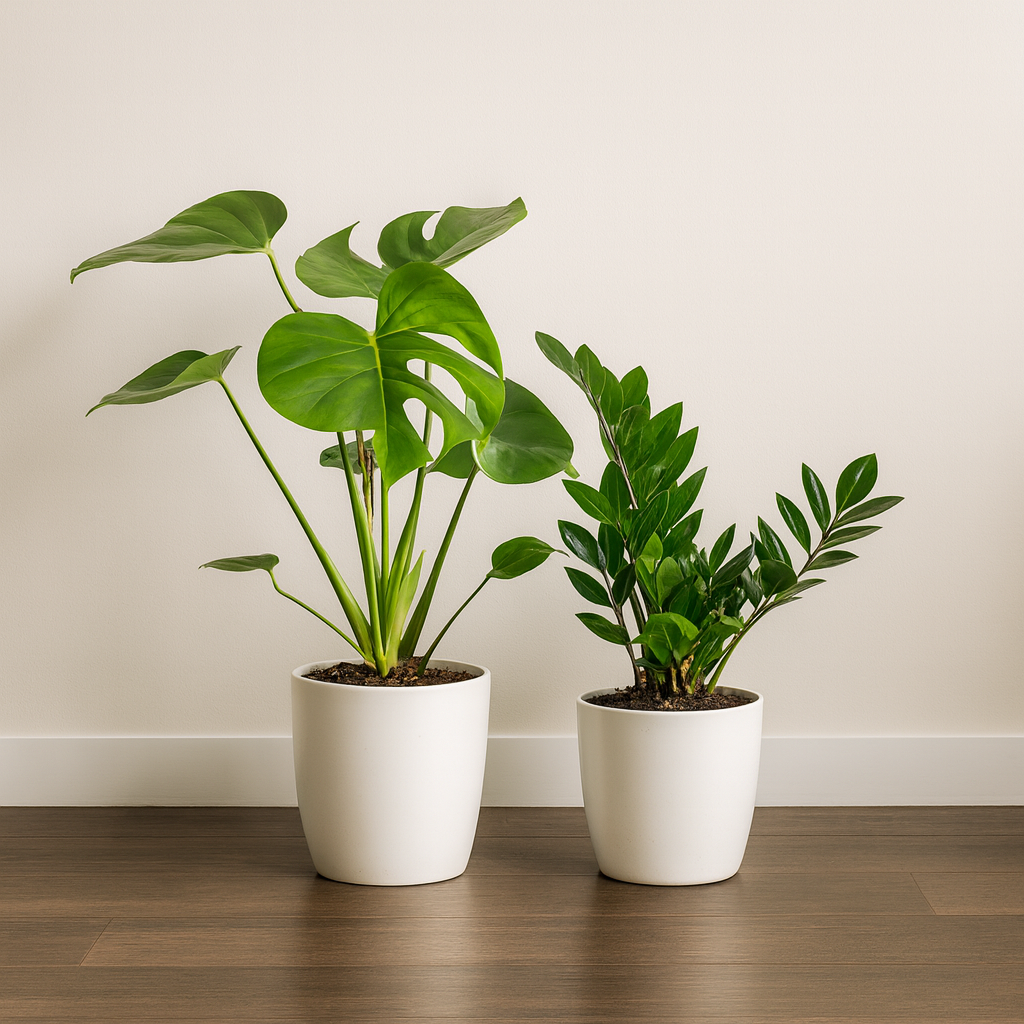 Das tropische Duo aus kompakter Monstera Tauerii und robuster Glücksfeder vereint modernes Grün mit minimalem Pflegeaufwand. Die Monstera bringt strukturierte Blattformen, die Zamioculcas glänzende Eleganz – perfekt für helle bis halbschattige Räume. Ideal für stilvolle Urban Jungle Vibes mit wenig Aufwand.