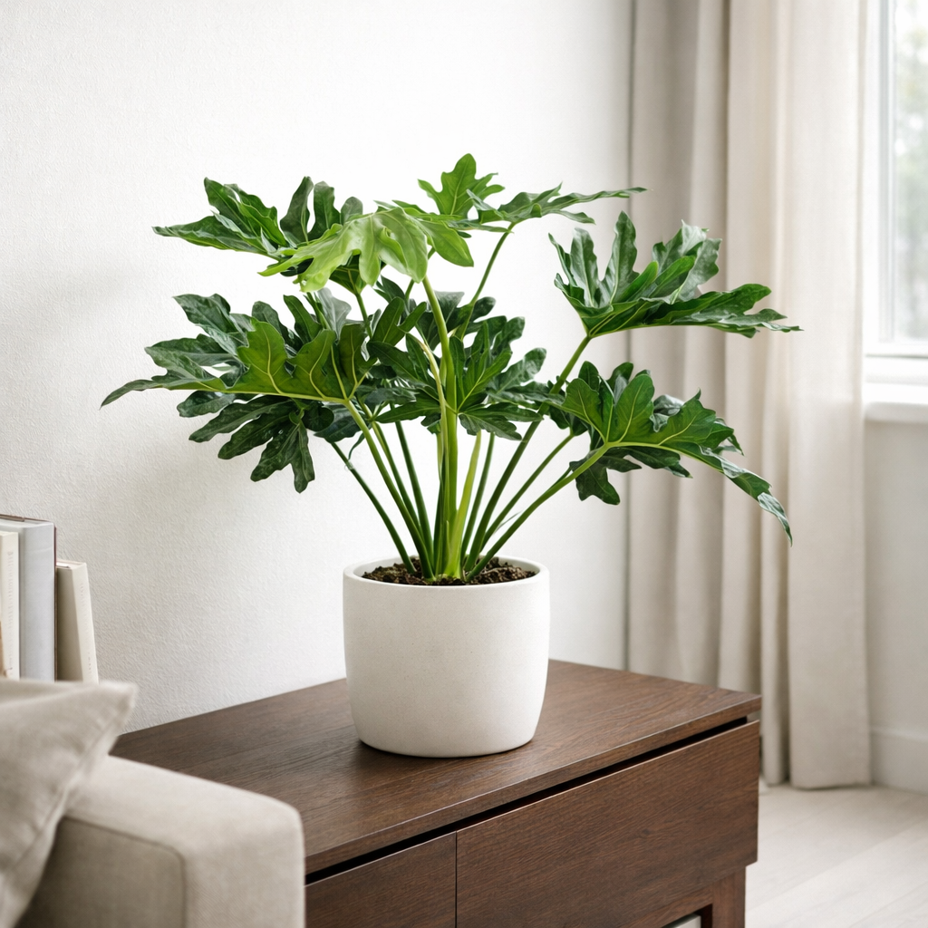 Der Philodendron Selloum ist eine eindrucksvolle Zimmerpflanze mit großen, tief geschlitzten Blättern und kräftigem Wuchs. Er bringt sofort tropisches Flair und natürliche Tiefe in Wohnräume und eignet sich besonders als Solitärpflanze. Trotz seiner imposanten Erscheinung ist er gut alltagstauglich und bei passendem Standort zuverlässig im Wachstum.